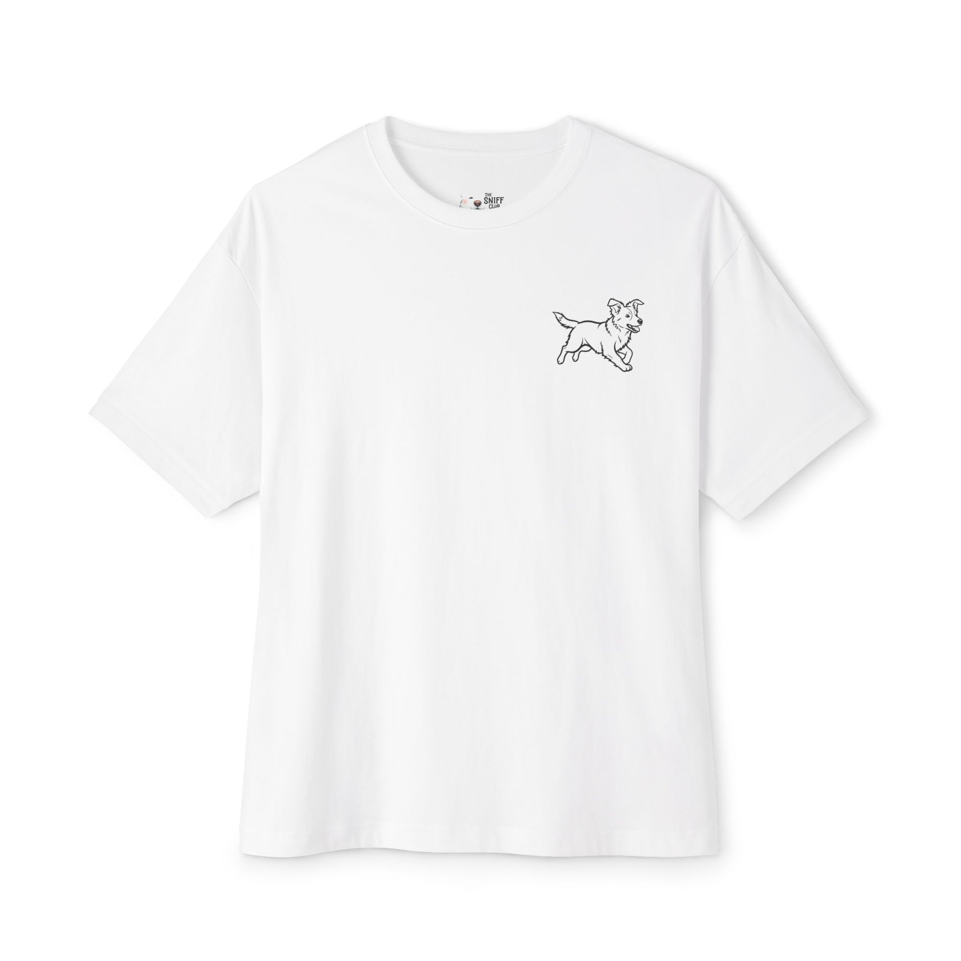 Oversized, boxy, and 100% cotton, it’s perfect for wearing while surviving zoomies, cleaning up the aftermath of their latest “project,” or just laughing at how your dog thinks they are secretly running the household. Comfortable enough for humans, chaotic enough to match your dog.